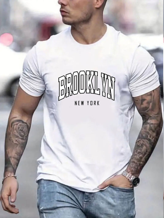''BROOKLYN NEW YORK'' Stampa, Maglietta Grafica Uomo, Magliette Casual Comode Per L'Estate, Abbigliamento Maschile