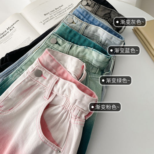 0195 Summer new jeans women shorts high waist A word version of thin tide gradient color pants