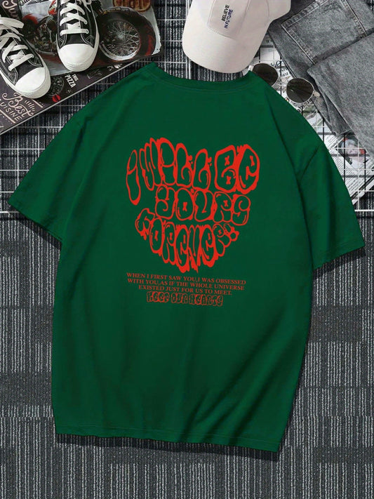'I Will Be Yours Forever' Pattern Print Men's Comfy T-shirt, Graphic Tee Men's Summer Outdoor Clothes, Men's Clothing, Tops For Men