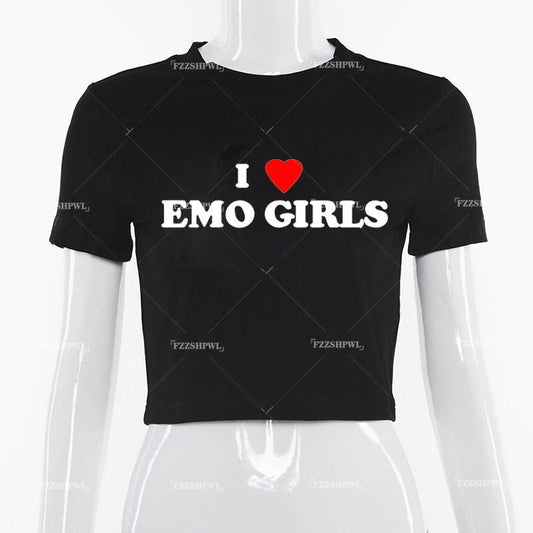 'I Heart Emo Girls' Letter Graphic Tee