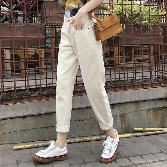 Steel jeans female 2021 Korean version of the high waist loose straight old margin tide wild nine pants factory direct sales