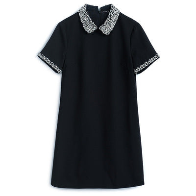 MIUCO Heavy Industries Beaded Temperament Lapel Loose Covering Meat Simple Wild Short Dress Female 2021 Spring New