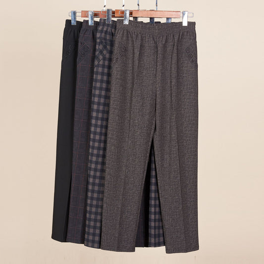 Mother pants Spring and autumn models brand straight high waist trousers middle-aged loose elastic casual wear large size women's pants