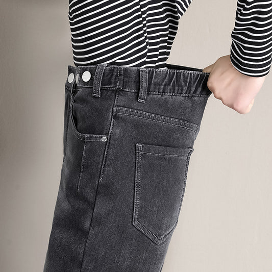 2021 autumn new jeans female loose high waist slim thin versatile force tight waist radish hanny pants
