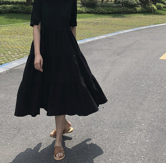 Lufu summer new cold dark dress A word skirt large swing loose literary fashion black long skirt thin female