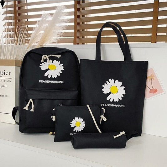 New shoulder bag female Korean fashion wild four-piece backpack canvas outdoor travel backpack big capacity female