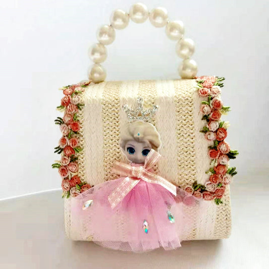 2021 summer new fashion flower side grass wrapper pearl hand checker cross cute children's bag