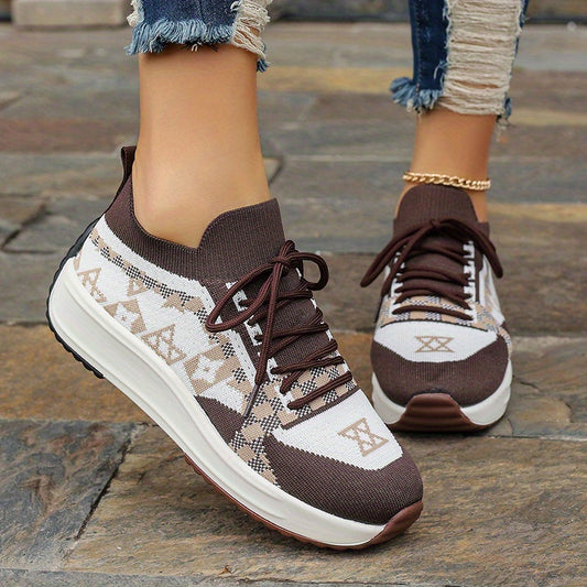 Women's Knitted Platform Sneakers, Trendy Lace Up Low Top Running Trainers, Breathable Outdoor Walking Sports Shoes