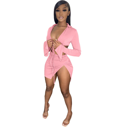Women's Spring And Summer Lace-up Long-sleeved Swimsuit Suit