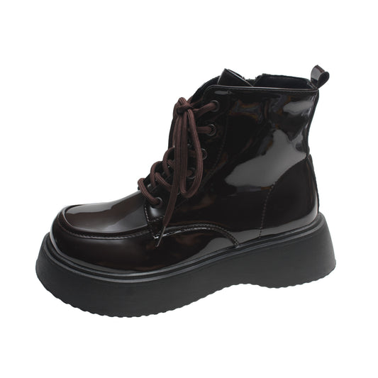 Women's Spring And Autumn New Vintage Patent Leather Big Toe Short Boots