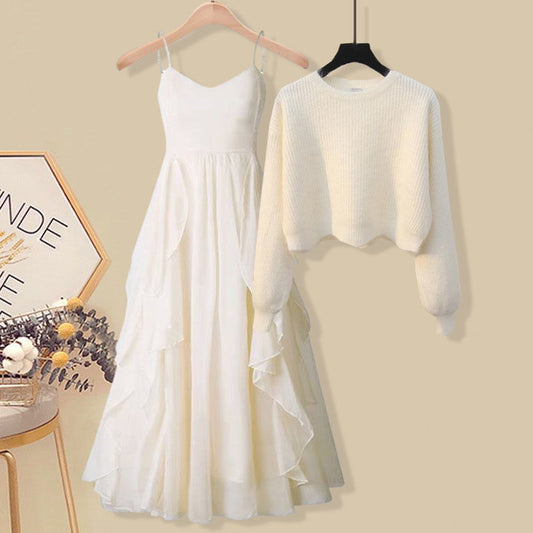 Women's Knitted Sweater Loose Sling Dress Suit