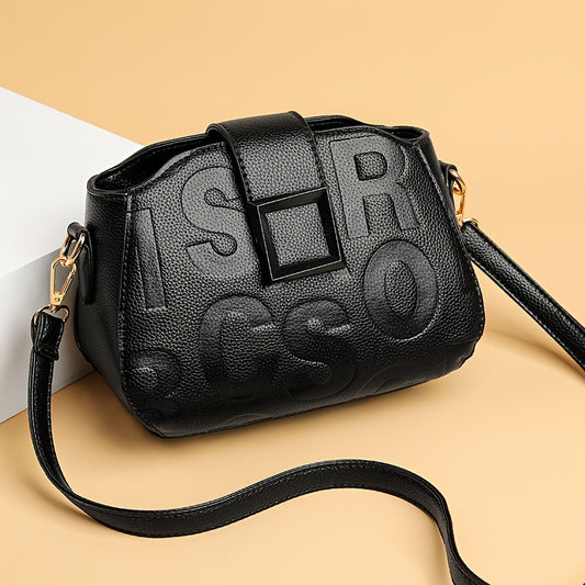 Letter Embossed Crossbody Bag, Small Retro Style Shoulder Bag, Women's Every Day Purse With Multi Layer