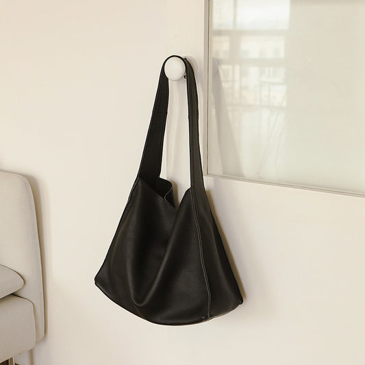 Genuine Leather Women's Bag Capacity Bucket Bag Retro Soft Leather