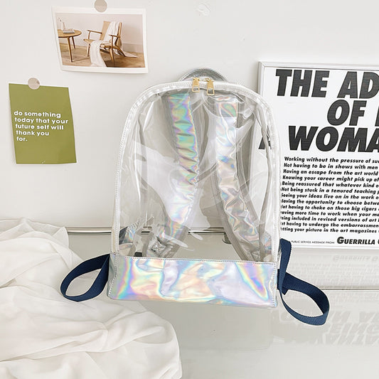 PVC Transparent Waterproof Backpack Large Capacity Student Schoolbag