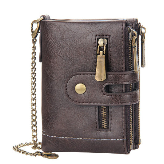 Men's Short Wallet With European And American Double Zippers