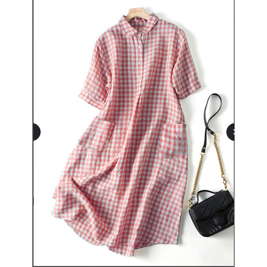 Summer Stitching Short Sleeve High Waist Pure Color Dress