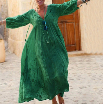 Elegance Retro Casual Long Sleeve Solid Color Dress