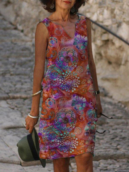 Women's V-neck Flared Sleeves Cake Flowers Stitching Dress