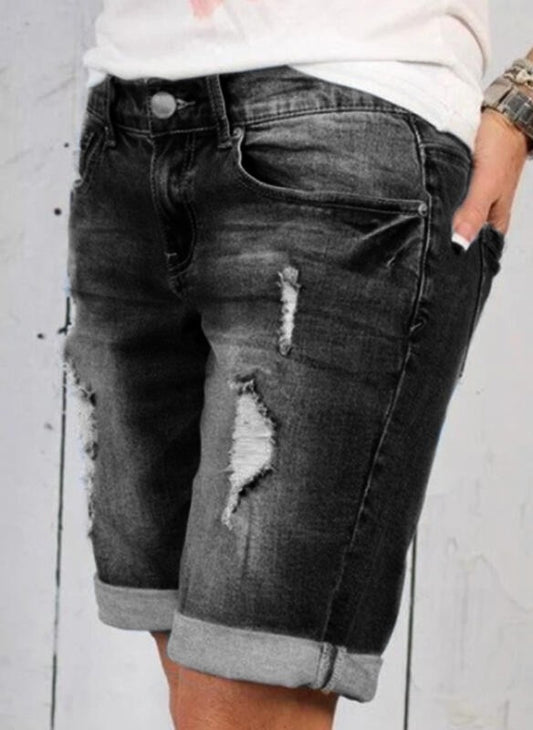 Ripped Cropped Pants Stretch Denim Middle Pants For Women