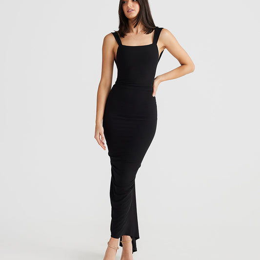 Fashion Casual Striped Sleeveless Square Collar Dress Women