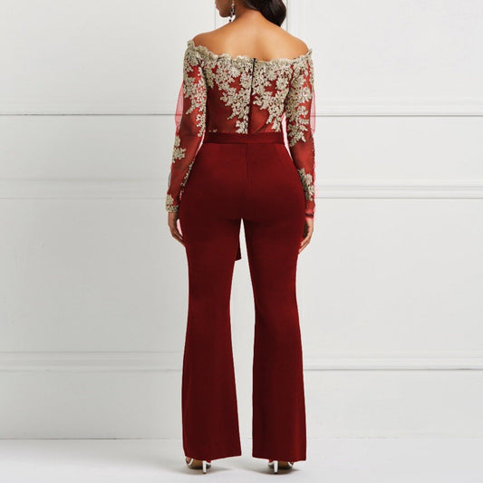 Long Sleeve Off Shoulder Dressy Jumpsuit