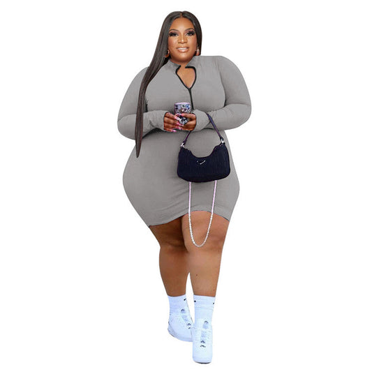 PLUS ZIPPER KNIT SHORT DRESS