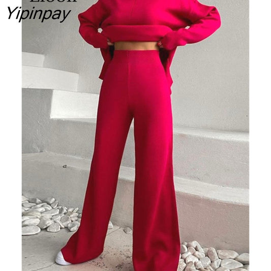 Yipinpay Knitted Two Piece Set Baggy Turtleneck Sweater Tops And Pants Women High Waist Autumn Winter Knitwear Loose Sweaters Sets