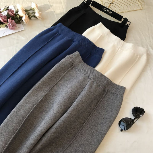 2021 South Korea spring new fashion high waist loose knitted grandmat pants nine hundred taking casual pants female INS