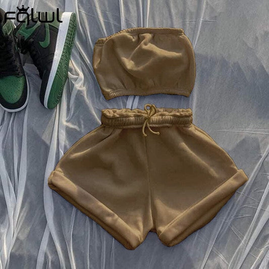 FQLWL Black White 2 Two Piece Sets Women Summer Outfits Crop Top Biker Shorts Matching Set For Sweatsuits Tracksuit Women Female