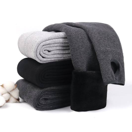 Thicken stepping foot female winter plus velvet slim leggings women wearing vertical black socks high waist warm pants thread