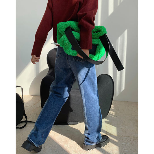 Winter new blog hipster design, gradual growth, high waist, wide, jeans, loose, thin trousers, women