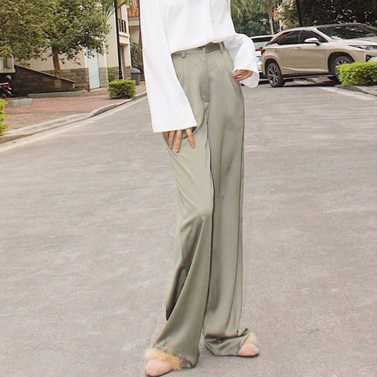Korean version of the fashion high waist ribbon wide leg pants 2021 spring new wild straight straight tow mandies trousers casual pants tide