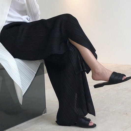 Summer new Japanese lazy nine-house wind pleats a wide leg straight lazy pants loose slim nine pants women