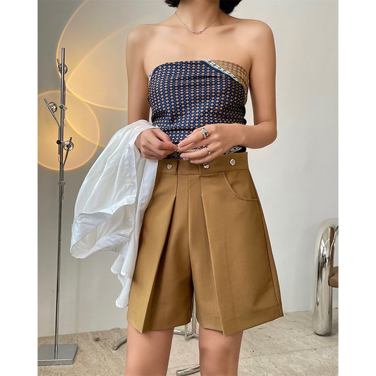 Summer new European and American bloggers hipster hipster high waist suit pants wide-leg loose thin casual shorts women