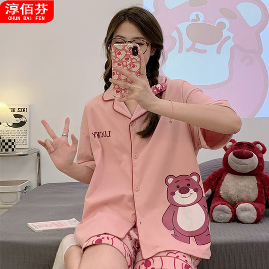 Pajamas women's summer 2023 new short-sleeved shorts thin section cartoon student cardigan home service girl suit