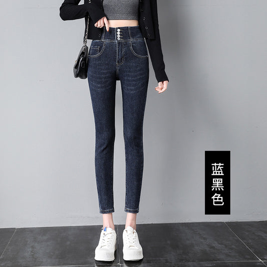 High waist jeans female 2021 new spring and autumn Korean version of pencil pants Slim thin thin section small foot pants trousers tide
