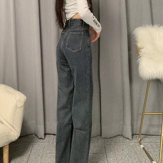 High waist vertical wide-leg jeans female autumn new Korean version of the small son