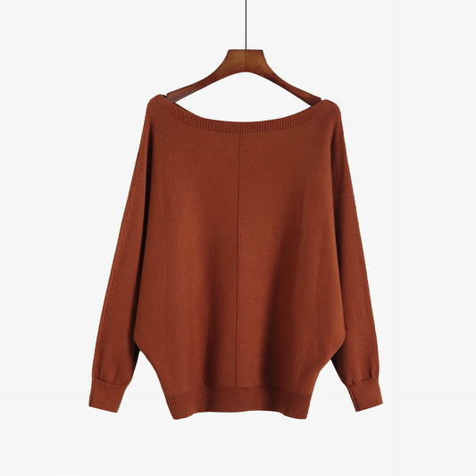 Amazon Explosive 2021 Women's New Sweater Knit Sweater One-line Collar Bat Sleeve Loose Korean Tops Large Size