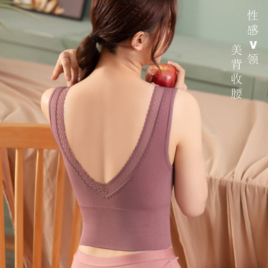 Summer seamless cotton lace V-neck straps vest leopard female gather no steel ring abdomen latex large size bra