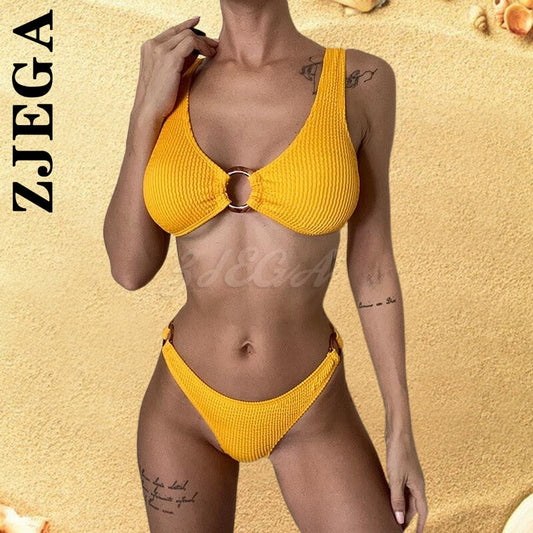 Zjega Bandeau Swimwear Women One Shoulder Ribbed Sexy Bikinis Women Swimsuits Bathing Suits Solid Brazilian Biquini Set