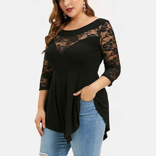 Plus Size Floral Lace Hollow Out Sexy Tunic Blouse Shirt Women Spring Autumn Big Size Tops Ruffles Irregular Blusas