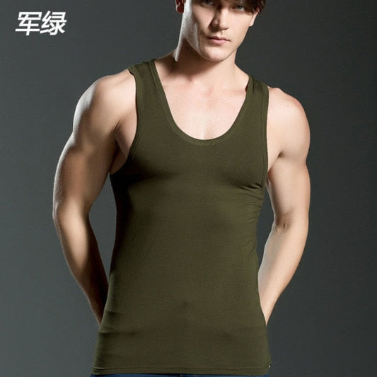 Men's Close-fitting Vest Fitness Elastic Casual O-neck Breathable H Type All Cotton Solid Undershirts Male Tanks