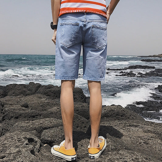 Summer Personality Cowboy Shorts Korean version of the body slim big broken fashion trend five points denim short pants