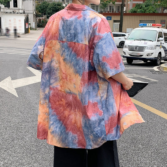 Perth casual port short sleeve shirt fashion personality doodle gradient upper men and women couple big size shirt