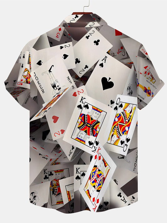 Men's Poker 3D Print Fashion Short Sleeve V-neck Button Down Shirts, Men's Summer Clothes, Casual Graphic Tops, Men's Novelty Pajamas Tops