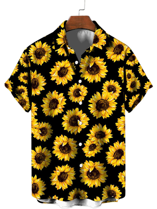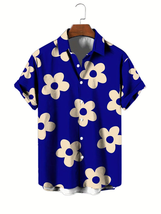 Men's Hawaiian Shirts, Flower 3D Print Fashion Short Sleeve V-neck Button Down Shirts, Men's Summer Clothes, Casual Graphic Tops, Men's Novelty Pajamas Tops