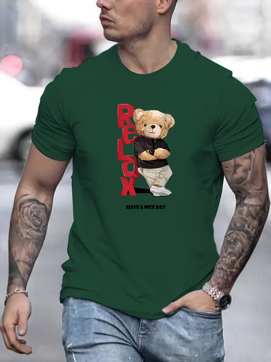 Trendy Bear Pattern Print Men's Comfy Chic T-shirt, Graphic Tee Men's Summer Outdoor Clothes, Men's Clothing, Tops For Men, Gift For Men