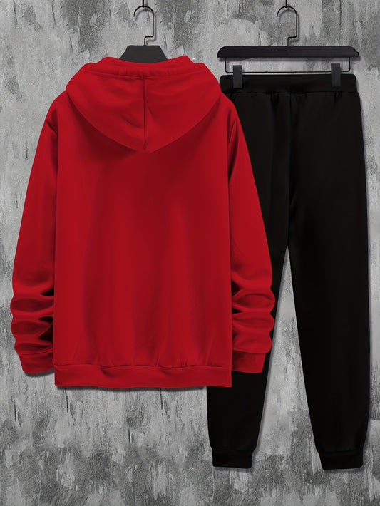 Men's 2-piece Letter Print Outfit Set, Men's Hooded Sweatshirt With Drawstring And Pocket & Sweatpants Set, Spring Fall