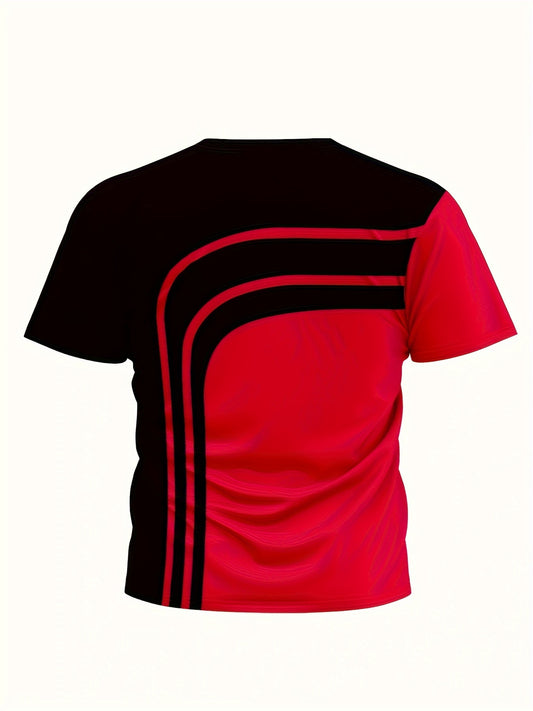 Plus Size Men's Contrast Color Stripes Print T-shirt Short Sleeve Fashion Tees, Summer, Men's Clothing
