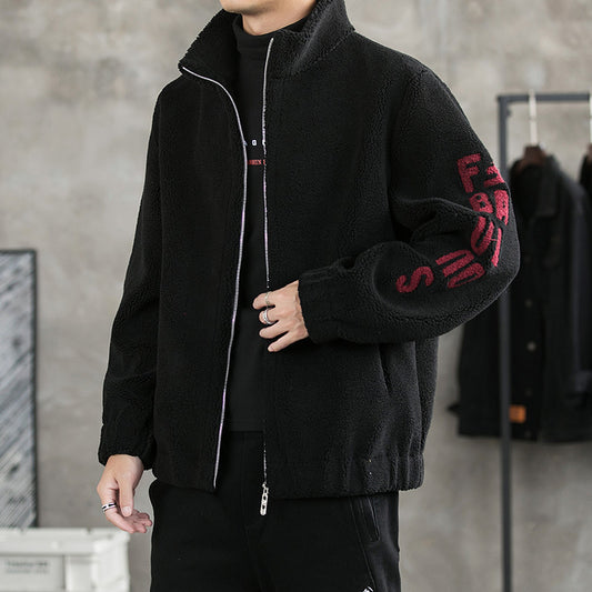 Autumn and winter men's granular velvet jacket Korean version of the trend new Slim collar jacket warm casual fleece jacket